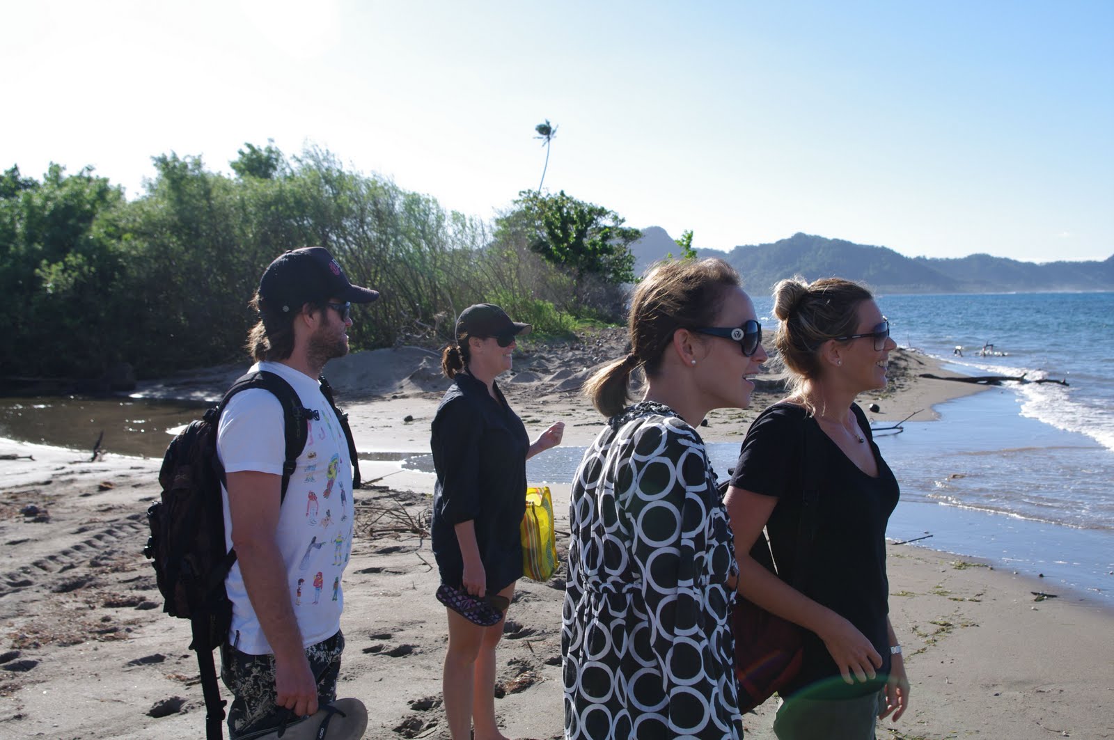 We finally decided we'd embarrassed ourselves enough for one afternoon, although we did have quite a bit of fun. We bid our farewells, as did the French Canadians, the middle aged couple, and "Jeff Bridges", who, incidentally, is not a good volleyball player for being as tall as he is. We contemplate posing our offer of wine and view gazing but can't get up the nerve. The "cool kids" stayed behind though to keep playing. Mission Failure.